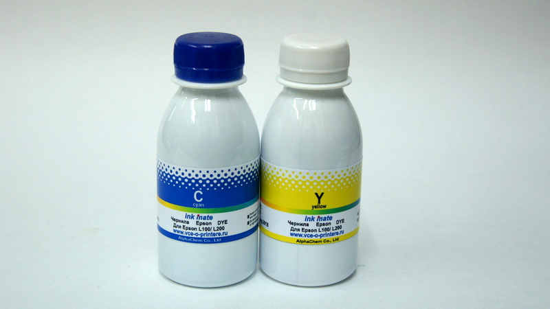 Чернила Epson комплект по 100мл. Для принтеров Epson L100 L200. Производитель Ink-Mate.