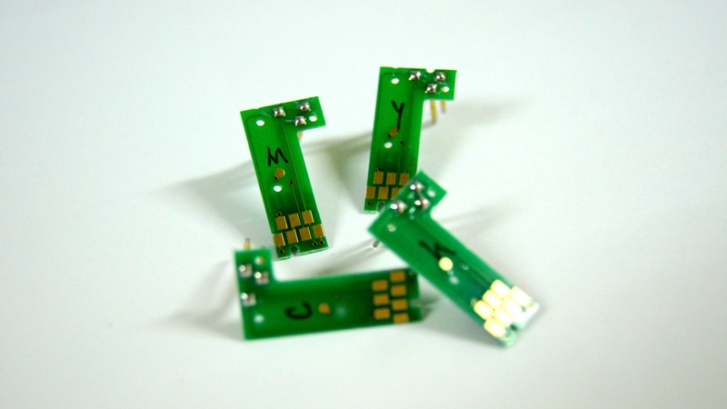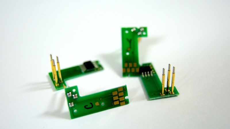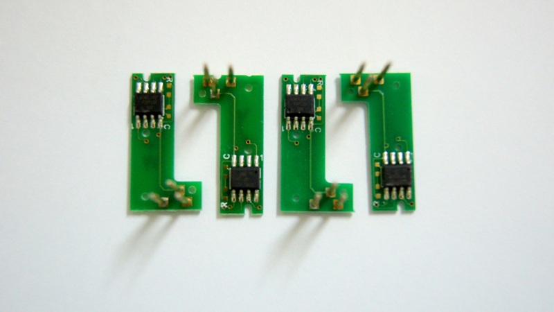 2. Переставляете чипы с оригинальных картриджей в специальные посадочные места на перезаправляемых картриджах.