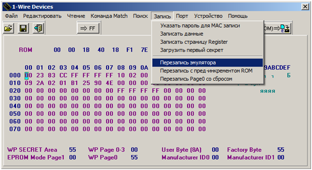 7.1. В случае использования эмулятора вместо оригинального чипа выбираем пункт «Перезапись эмулятора»