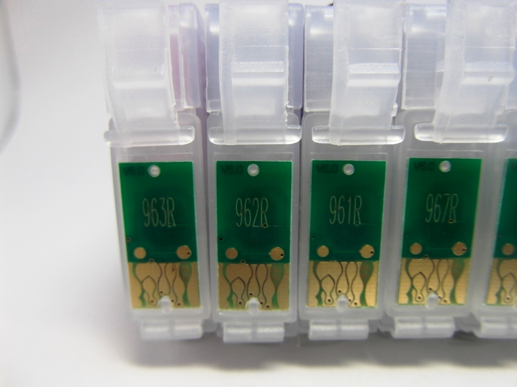 ПЗК для Epson R2880 заменяют оригинальные картриджи T0961 (Photo Black), T0962 (Cyan), T0963 (Magenta), T0964 (Yellow), T0965 (Light Cyan), T0966 (Light Mageta), T0967 (Light Black), T0969 (Light Light Black) (картриджи Epson c изображением белого волка). В данных картриджах используются пигментные чернила. Матовый черный картридж не входит в комплект!