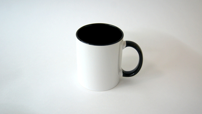 Кружка сублимационная под нанесение белая с черной ручкой, черной внутренней поверхностью.